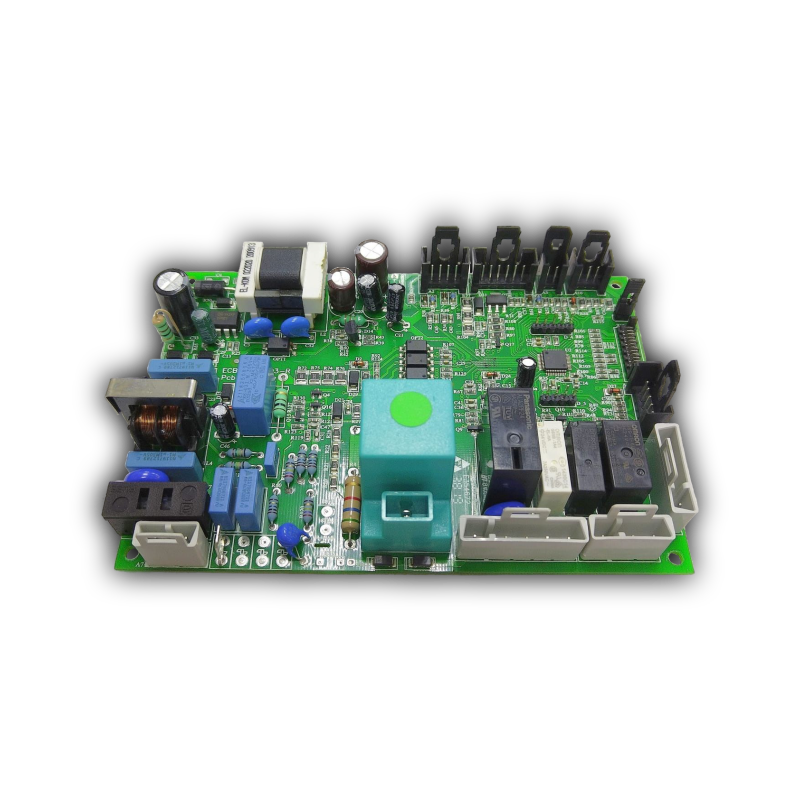 Основные функции - электропитание и управление работой котла в нормальной и аварийных ситуациях, взаимодействие и управление всеми электрическими и электронными компонентами котла. С помощью платы управления котлом осуществляются все операции по контролю процессами, управлению и отображению на жидкокристаллическом дисплее. Электронная плата - узловая деталь, к которой подключаются все датчики, защитные устройства и исполнительные механизмы. В газовых котлах используются платы управления с дисплеем Federica Bugatti (управление кнопками на панели котла), так и платы (управление осуществляется ручками регулировки.) С помощью платы управления котлом Federica Bugatti осуществляются все операции по контролю процессами, управлению и отображению на жидкокристаллическом дисплее. Электронная плата управления Federica Bugatti находится на откидной панели котла под пластиковой крышкой. С помощью данной платы осуществляется взаимодействие и управление всеми электрическими и электронными компонентами котла. На конденсационных котлах электронная плата котла Federica Bugatti может изменять частоту вращения вентилятора, в зависимости от режимов работы котла и конфигурации дымохода. Изменение частоты оборотов происходит за счет частотного регулирования и контролируется реле расхода дымовых газов, посредством электронной платы котла. Дисплей LCD демонстрирует состояние котла и сообщает информацию о его работе.